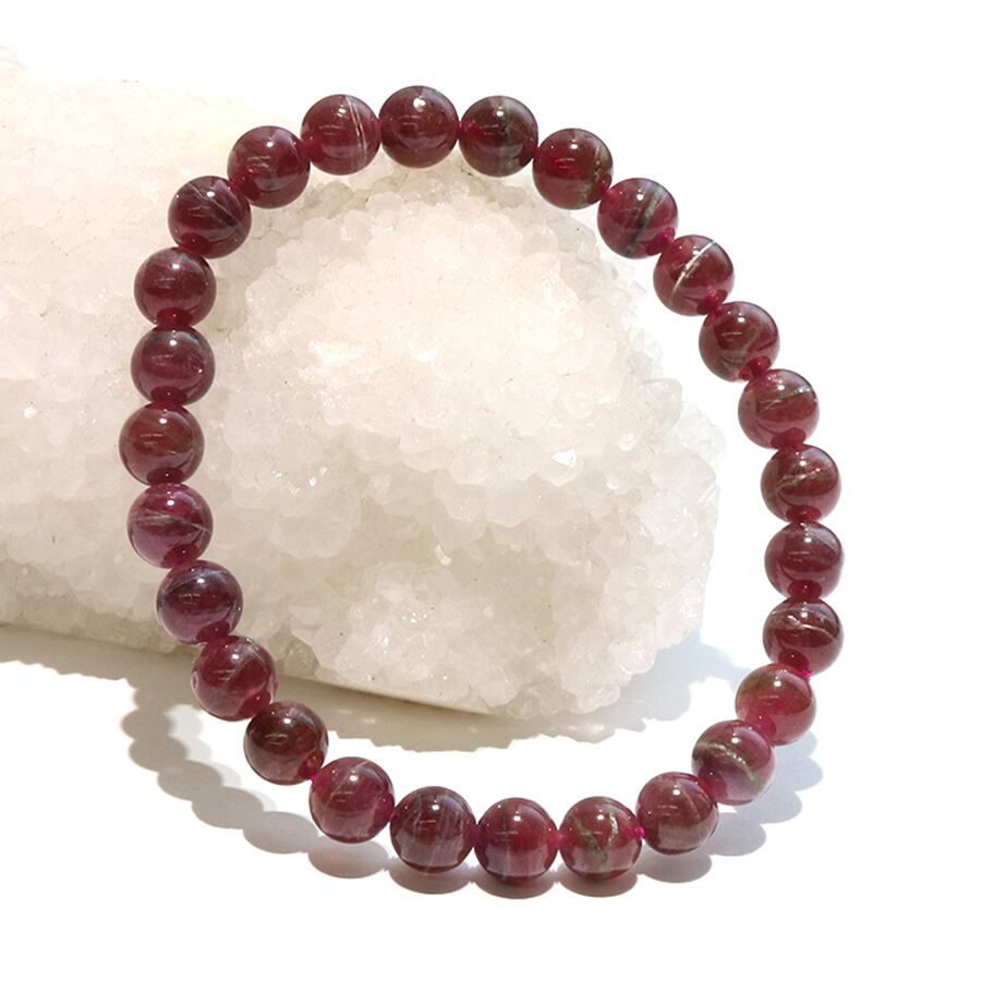 【心身の浄化・精神の調和】ブラジル産 天然石 レッドトルマリン ブレスレット <6.5mm>【1点物】
