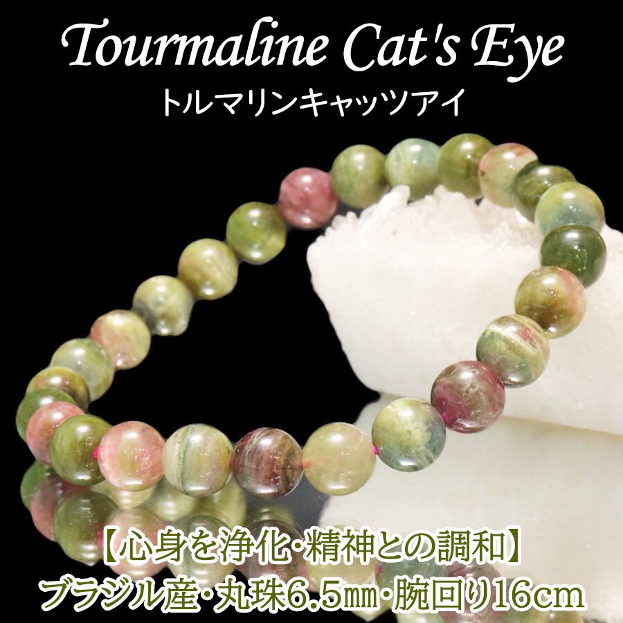 【心身を浄化・精神との調和】ブラジル産 天然石 トルマリンキャッツアイ ブレスレット<6.5mm>【1点物】