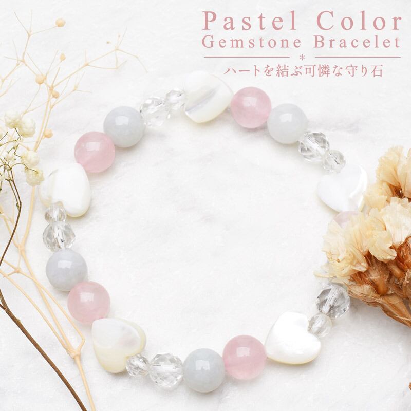 【母性・愛・優しさ】ハートを結ぶ可憐な守り石 パステルカラー ジェムストーン ブレスレット(10mm)