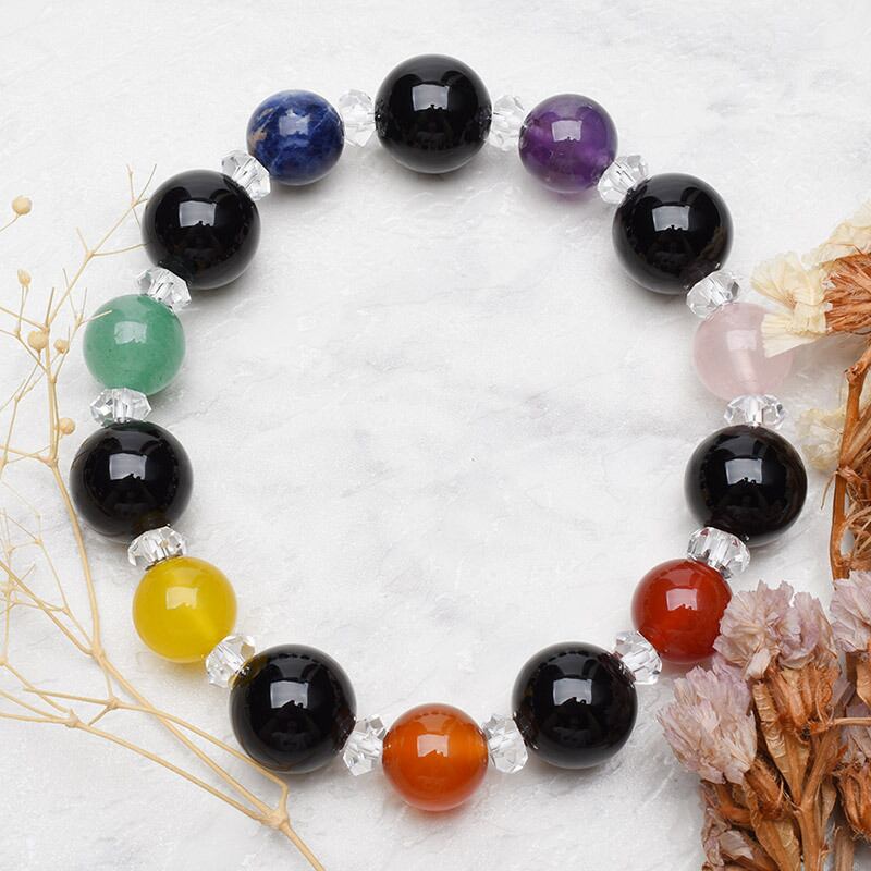 【七難即滅 七福即生】天然石 厄除け・招福・開運 七色 セブンチャクラブレス(12mm)