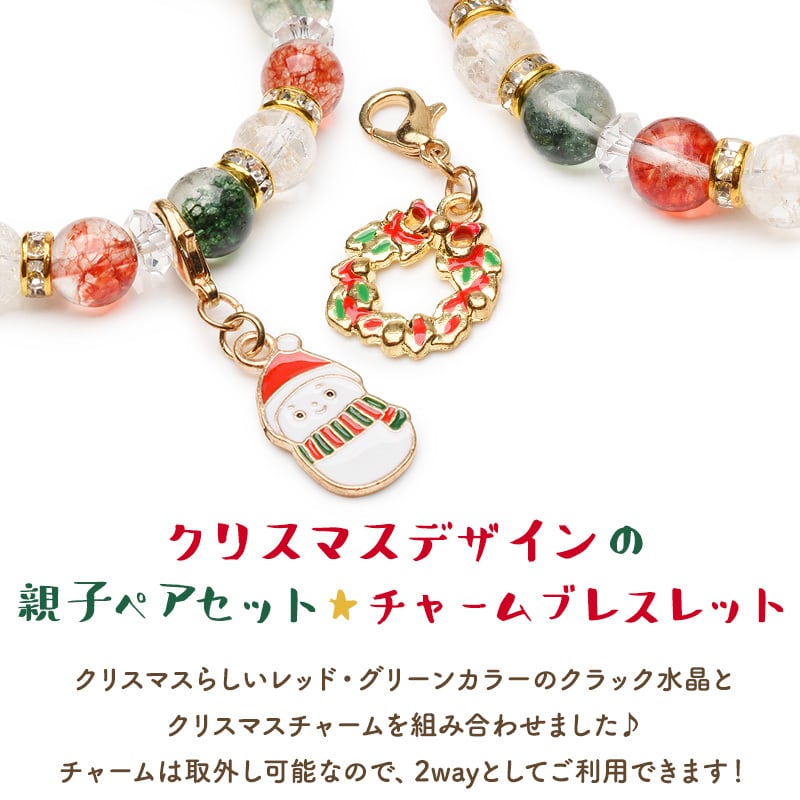 【浄化・厄除け・開運】天然石 クラック水晶×可愛いクリスマスチャーム付き 親子ペア ブレスレット