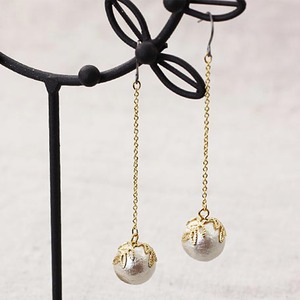 日本製のコットンパールロングピアス