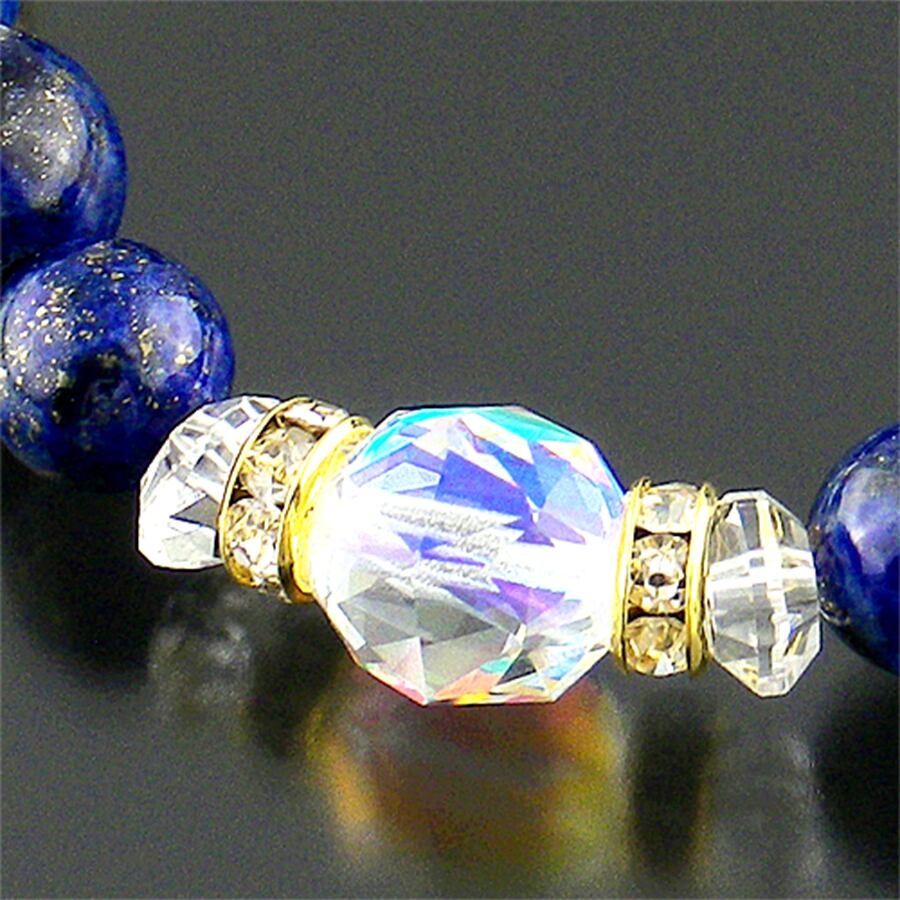 【願望成就・幸運の守護石】天然石 ラピスラズリ&ルナフラッシュ ブリリアントスターカット ブレスレット<ジュエリー品質保証書付き>(10-8mm)