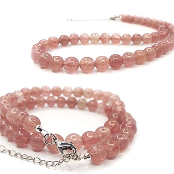 【愛情と願望実現】天然石 苺水晶 ストロベリークォーツ ネックレス(8mm)