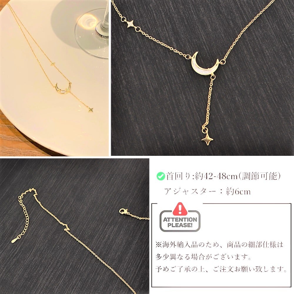【神秘的で可愛らしい】スター&ムーン ゴールドネックレス(アジャスター付)