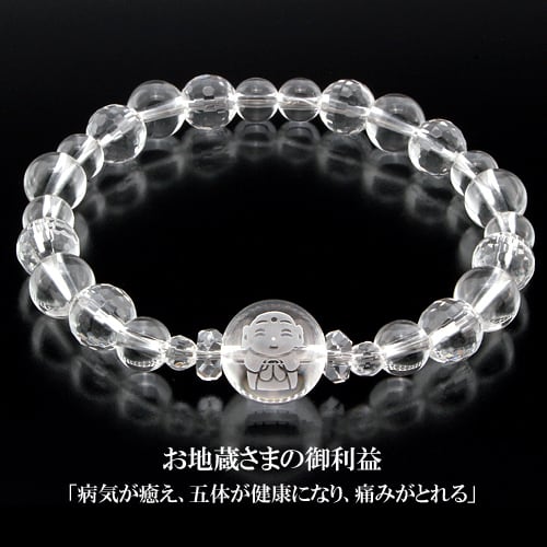 【五体健康】天然石 白水晶 地蔵ブレス<ジュエリー品質保証書>(12mm)
