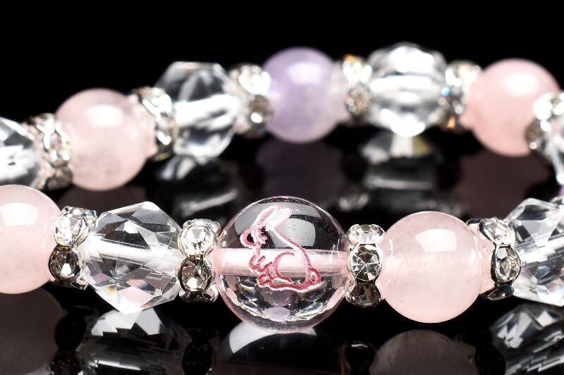 【恋愛成就・目標達成】天然石 ローズクォーツ×ラベンダーアメジスト うさぎ彫刻ブレスレット(8mm)