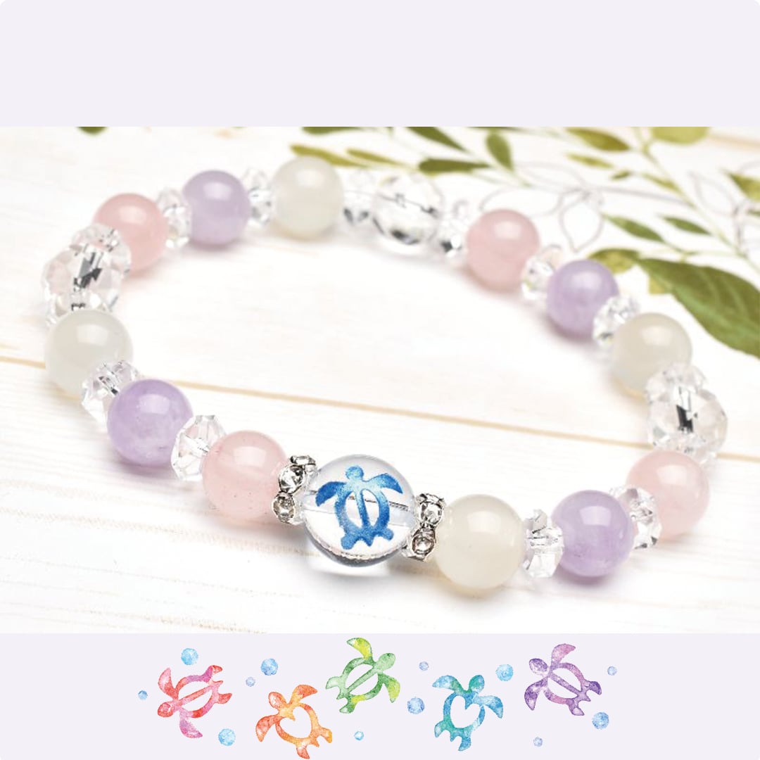 【縁結び・恋愛成就】天然石 ローズクォーツ×ラベンダーアメジスト 幸運を呼ぶ ホヌ・ハワイアンブレス(10mm)