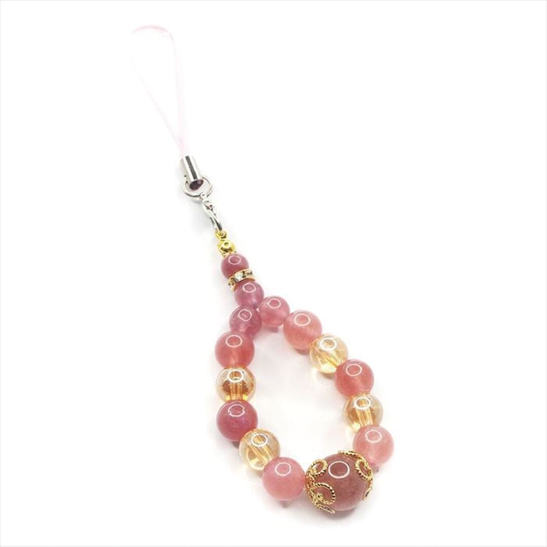【愛情・夢の実現】天然石 ストロベリークォーツ×ゴールデンオーラ水晶 チャームストラップ [5.5cm]
